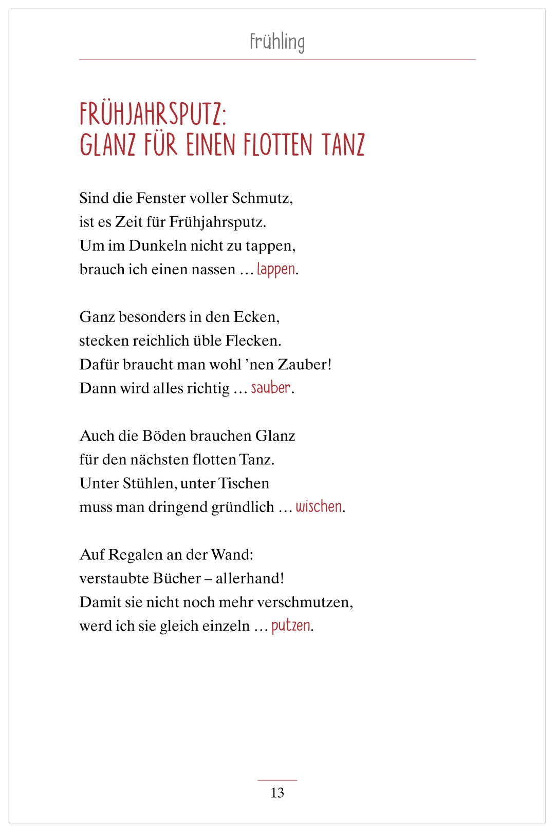 • Reime zu vertrauten und lebensnahen Themen wie Frühlingsgefühle, Glücksbringer oder der Besuch beim Friseur laden zum Schmunzeln und Erinnern ein