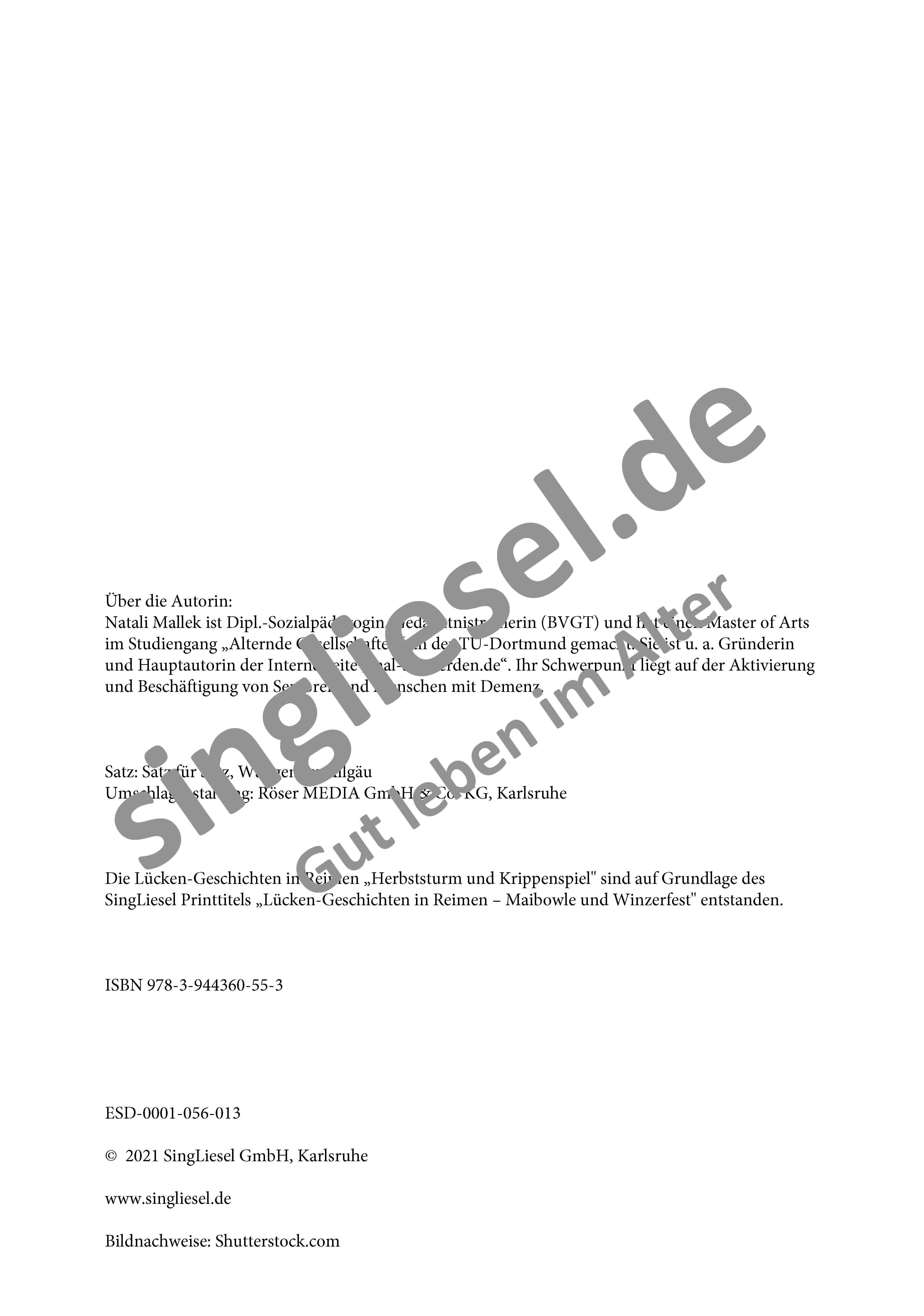 Mit viel Humor beschreibt Natali Mallek in ihren Lücken-Geschichten verschiedenste Situationen zum Thema „Herbststurm und Krippenspiel“ in Reimen.
