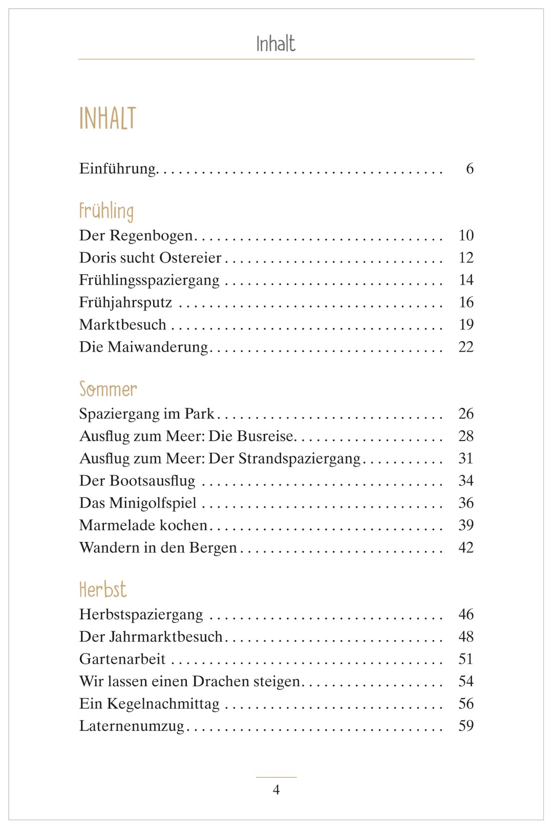 Die kurzen Einheiten bringen nicht nur den Kreislauf in Schwung, sondern auch die Stimmung! Sie stärken Körper und Geist gleichermaßen und schaffen gesellige Momente in der Gruppe, die verbinden. Es wird Minigolf gespielt und gekegelt, auf Berge gestiegen und auf Seen gerudert, Obst geerntet und Marmelade gekocht - und alle die zuhören, können die Bewegungen ganz einfach mitmachen. Sie können gleich loslegen, denn zusätzliches Material wird nicht gebraucht.