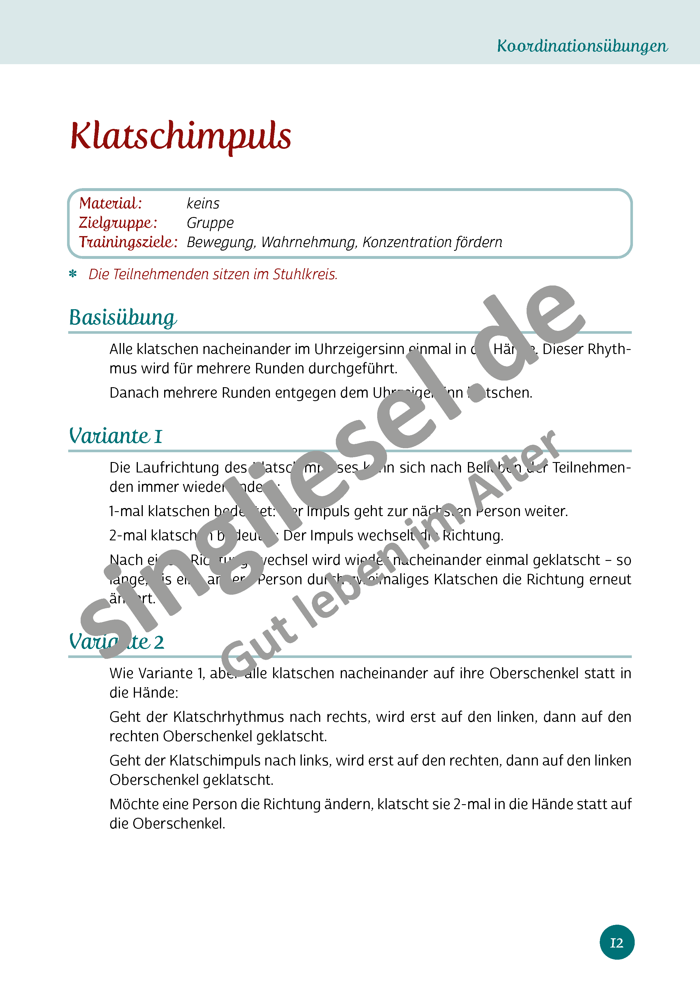 Die zwölf besten Koordinationsübungen, um Kopf und Körper fit zu halten - Aktives Gedächtnistraining für Senioren (Sofort-Download als PDF)