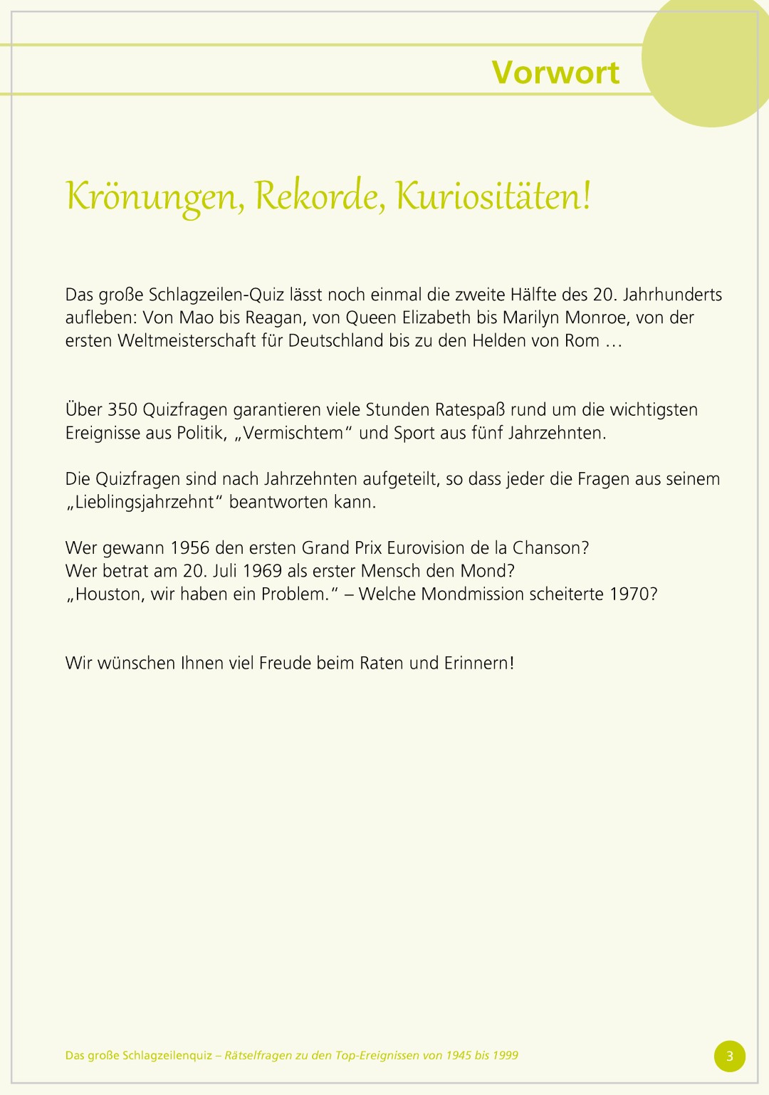 Das große Schlagzeilen-Quiz lässt nochmal auf die zweite Hälfte des 20. Jahrhunderts zurückblicken: von Mao bis Reagan, von Queen Elizabeth bis Marilyn Monroe, von der ersten Weltmeisterschaft für Deutschland bis zu den Helden von Rom …