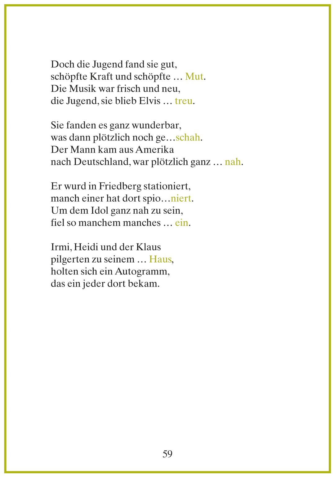 Jede Geschichte besteht aus Reimpaaren mit offenen Enden – Zuhörende ergänzen das letzte Wort und lösen so den Reim. - Ist „Mondlandung und Hitparade“ für Menschen mit Demenz geeignet?