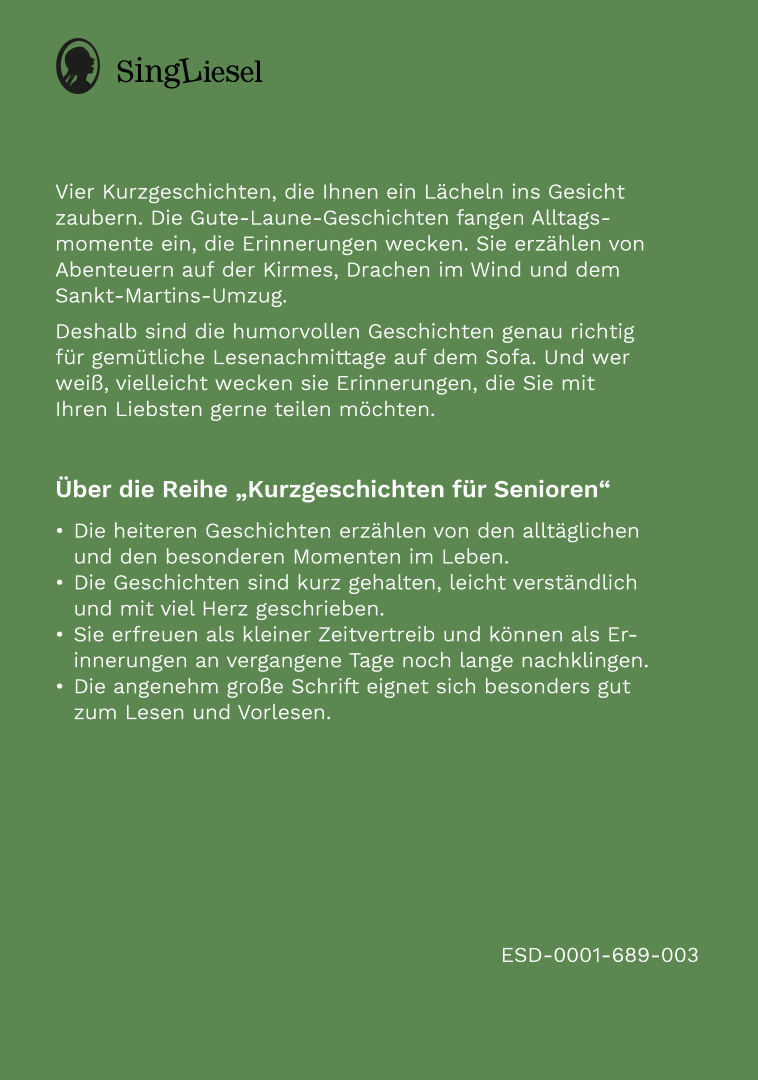 - Sie erfreuen als kleiner Zeitvertreib und können als Erinnerungen an vergangene Tage noch lange nachklingen. Die angenehm große Schrift eignet sich besonders gut zum Lesen und Vorlesen.