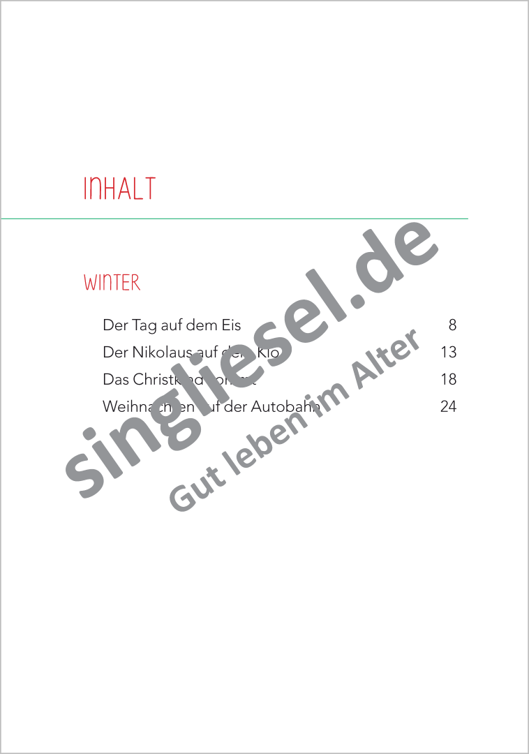 Diese vier Kurzgeschichten rund um das Thema Winter werden Ihnen ein Lächeln ins Gesicht zaubern. Die Gute-Laune-Geschichten fangen Alltagsmomente ein, die Erinnerungen wecken. Sie erzählen von Mutproben auf dem Eis, Weihnachten auf der Autobahn, dem Nikolaus auf dem Klo u.v.m.
