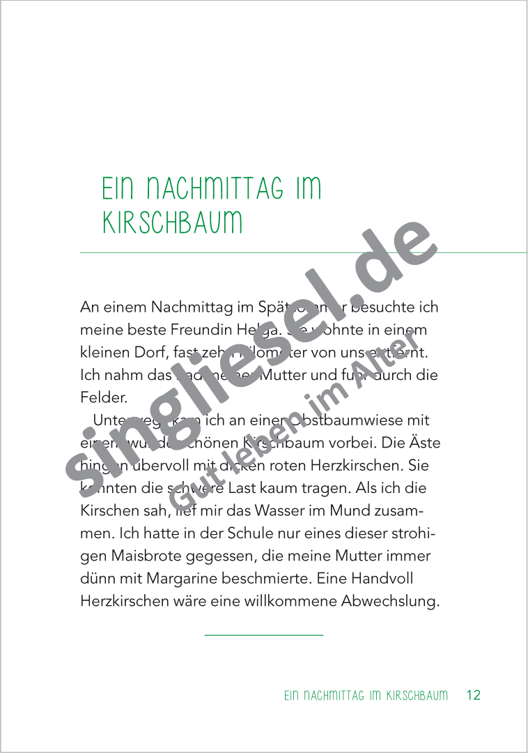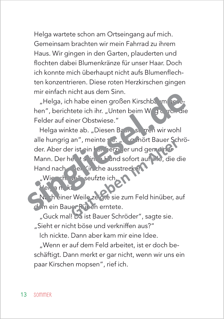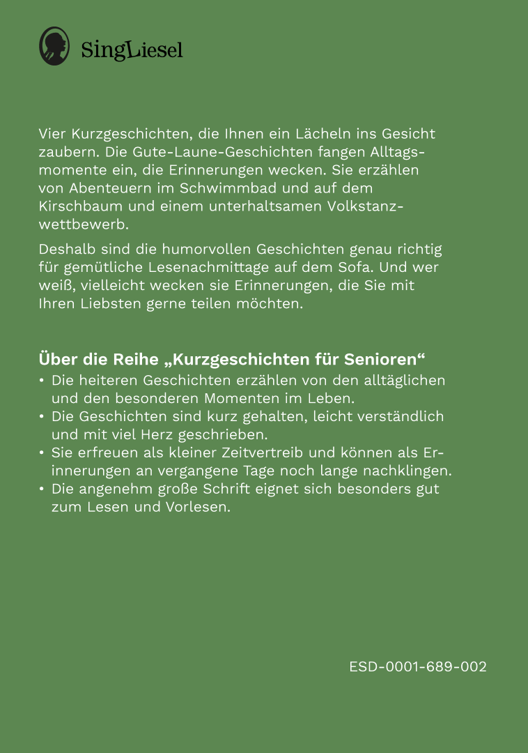 Diese vier Kurzgeschichten rund um das Thema Sommer werden Ihnen ein Lächeln ins Gesicht zaubern. Die Gute-Laune-Geschichten fangen Alltagsmomente ein, die Erinnerungen wecken. Sie erzählen von einem Nachmittag im Kirschbaum, Abenteuern im Schwimmbad, einem Volkstanztreffen u.v.m.