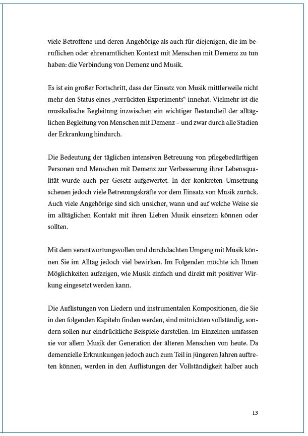 Das Buch richtet sich an alle, die ältere Menschen - besonders auch Seniorinnen und Senioren mit Demenz - mit Musik begleiten möchten. Ob für Betreuungskraft oder Angehörige: Das Buch bietet für alle wertvolle Impulse! - Wie wende ich das Buch an?