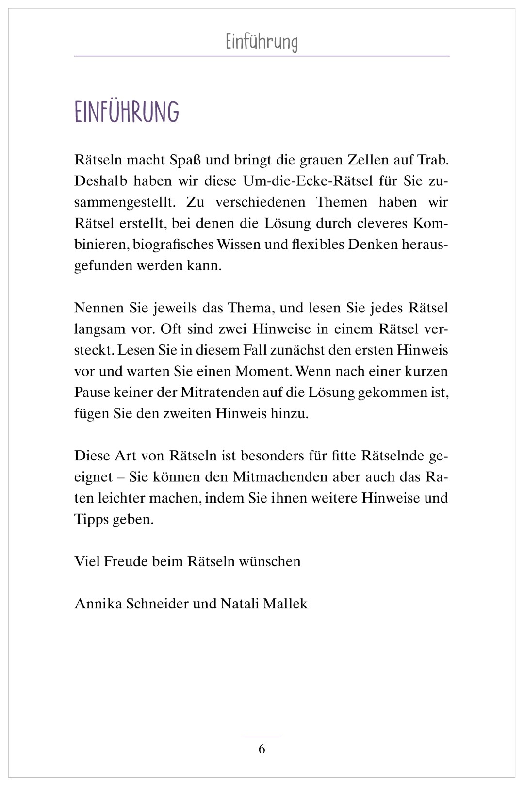 Die Hilfestellung erfolgt durch kreative Hinweise aus Alltag und Biografie; die Lösung ergibt sich durch Um-die-Ecke-Denken und Kombinieren. - Wie viele Rätsel sind enthalten?