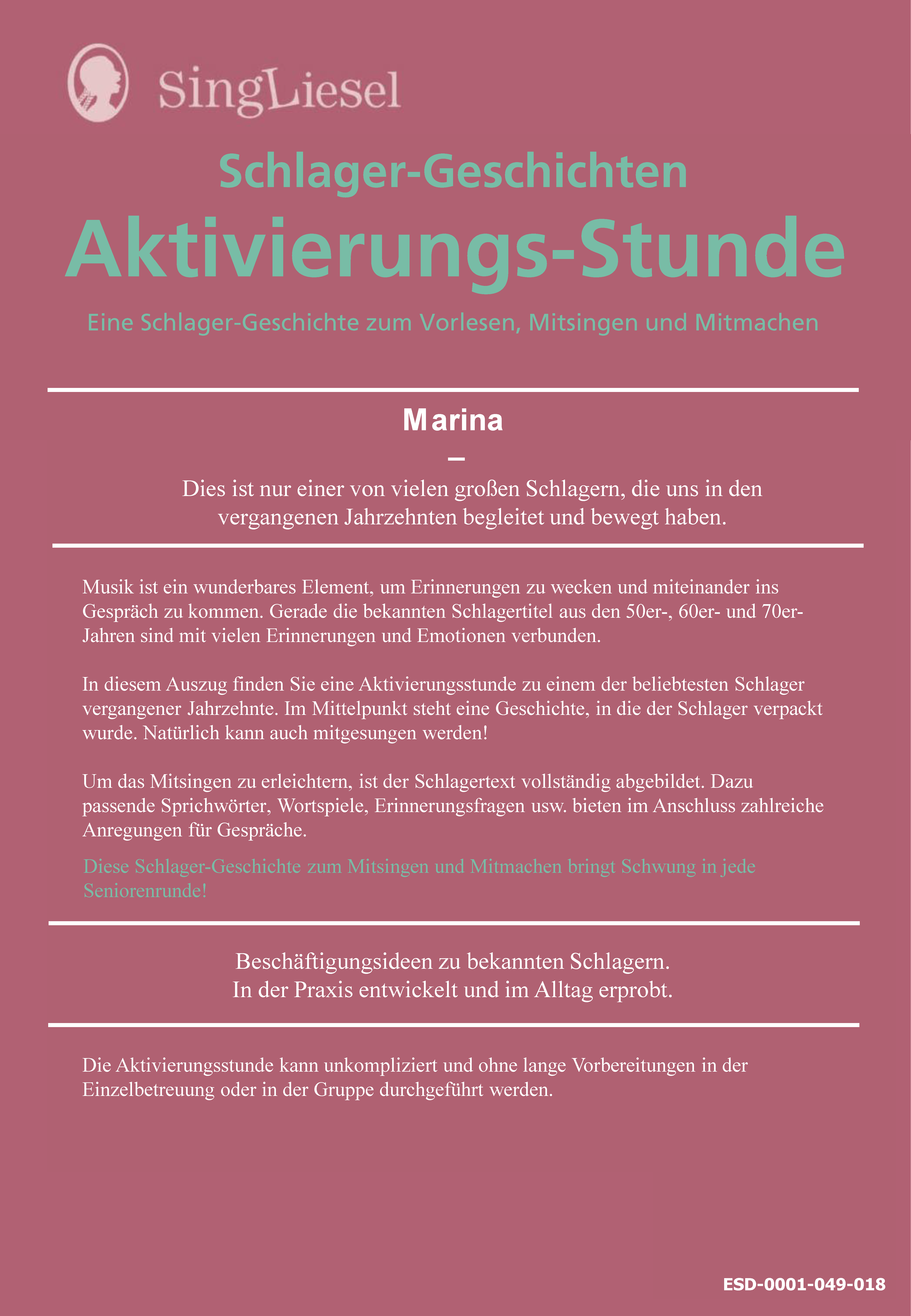 Marina - Schlagergeschichten Aktivierungs-Stunde (Sofort-Download als PDF)