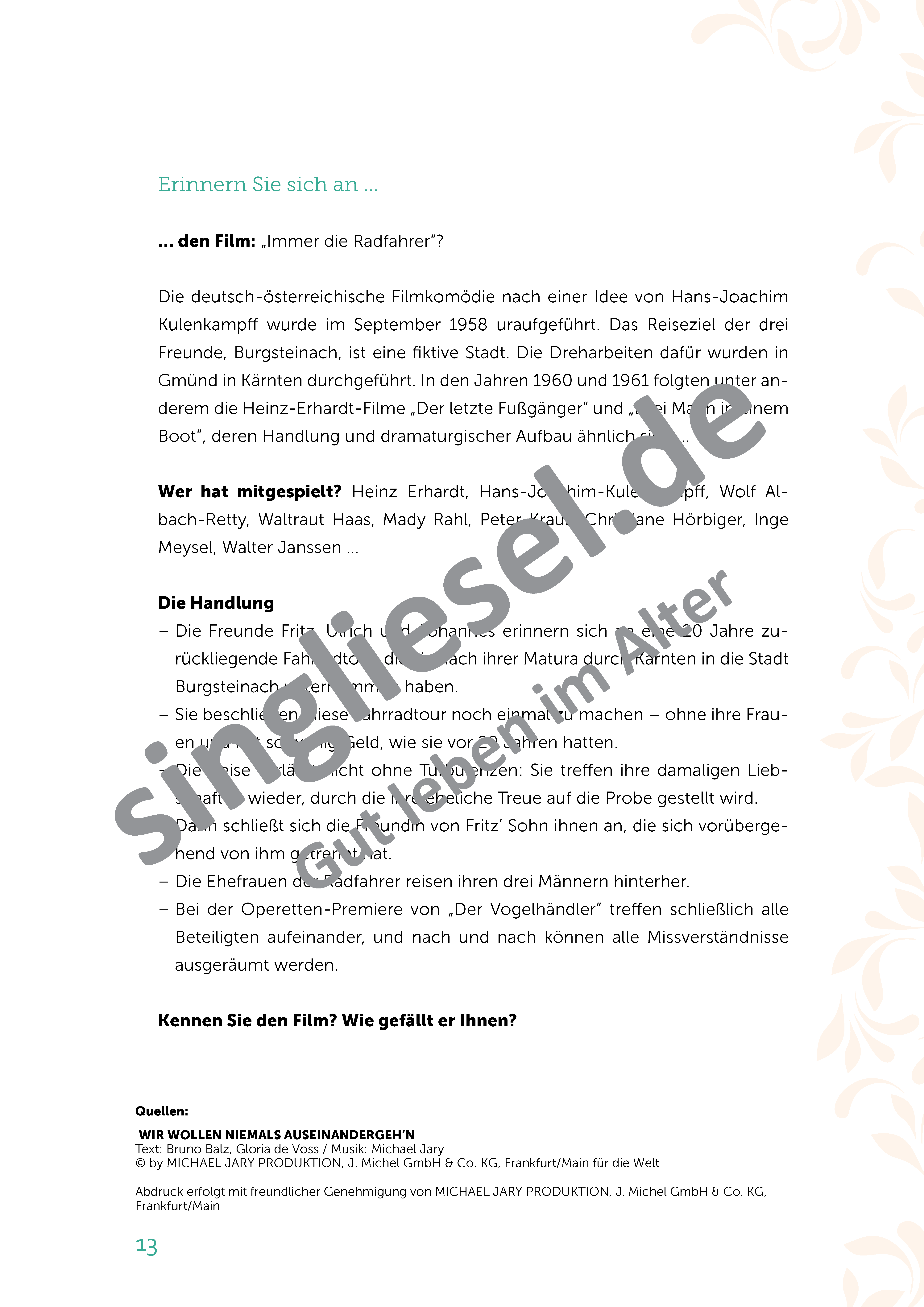 Niemals auseinandergehn - Schlagergeschichten Aktivierungs-Stunde (Sofort-Download als PDF)