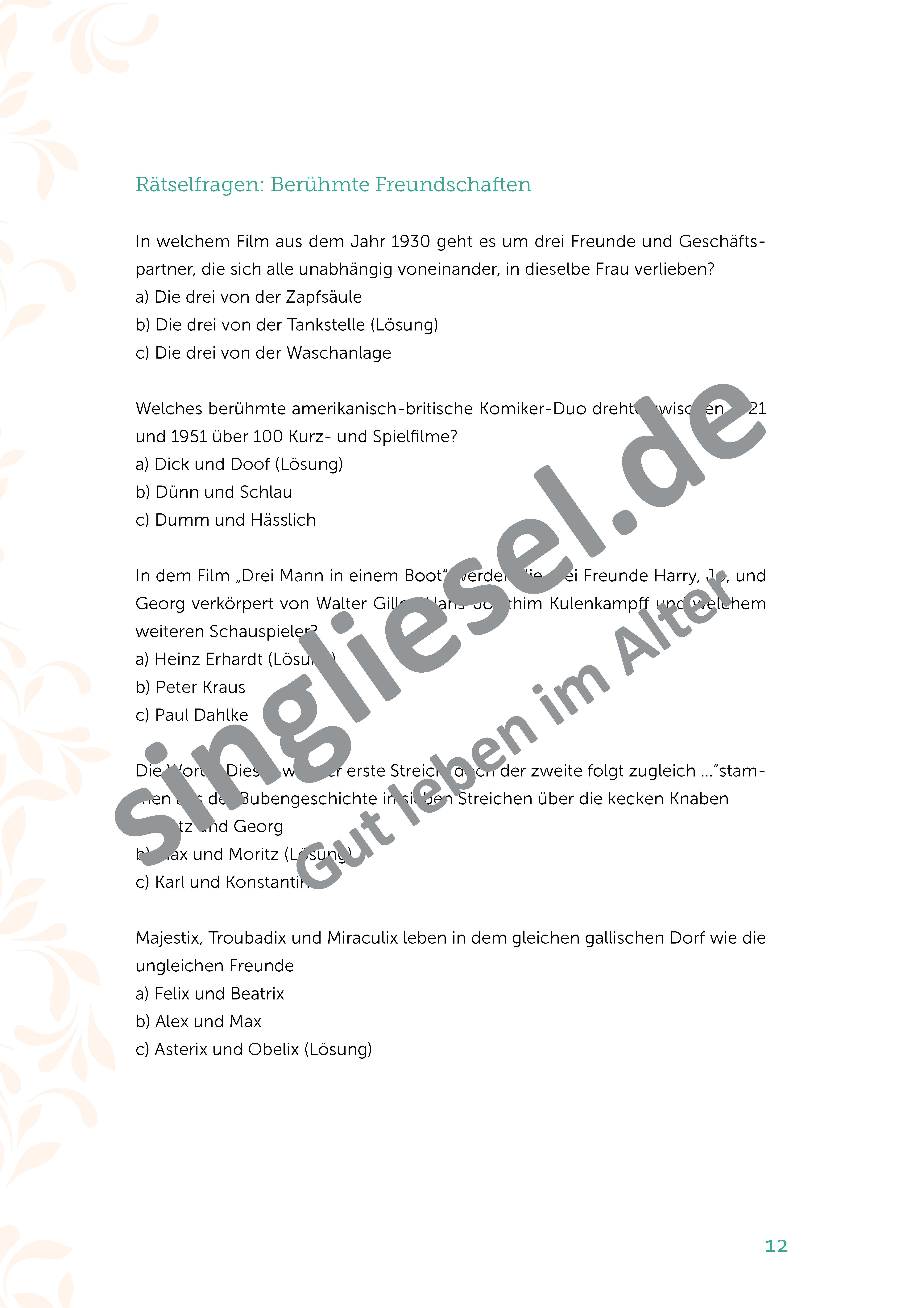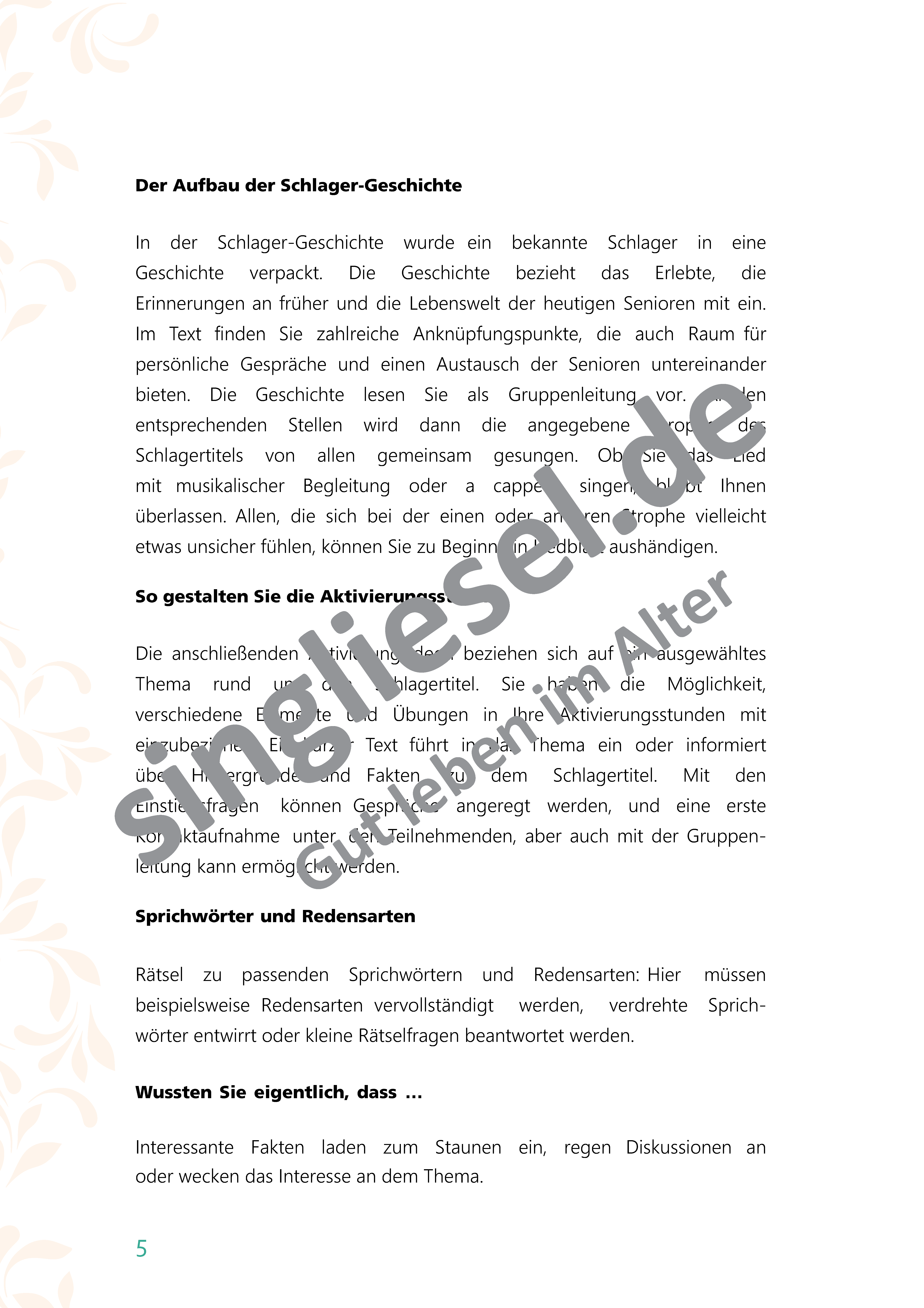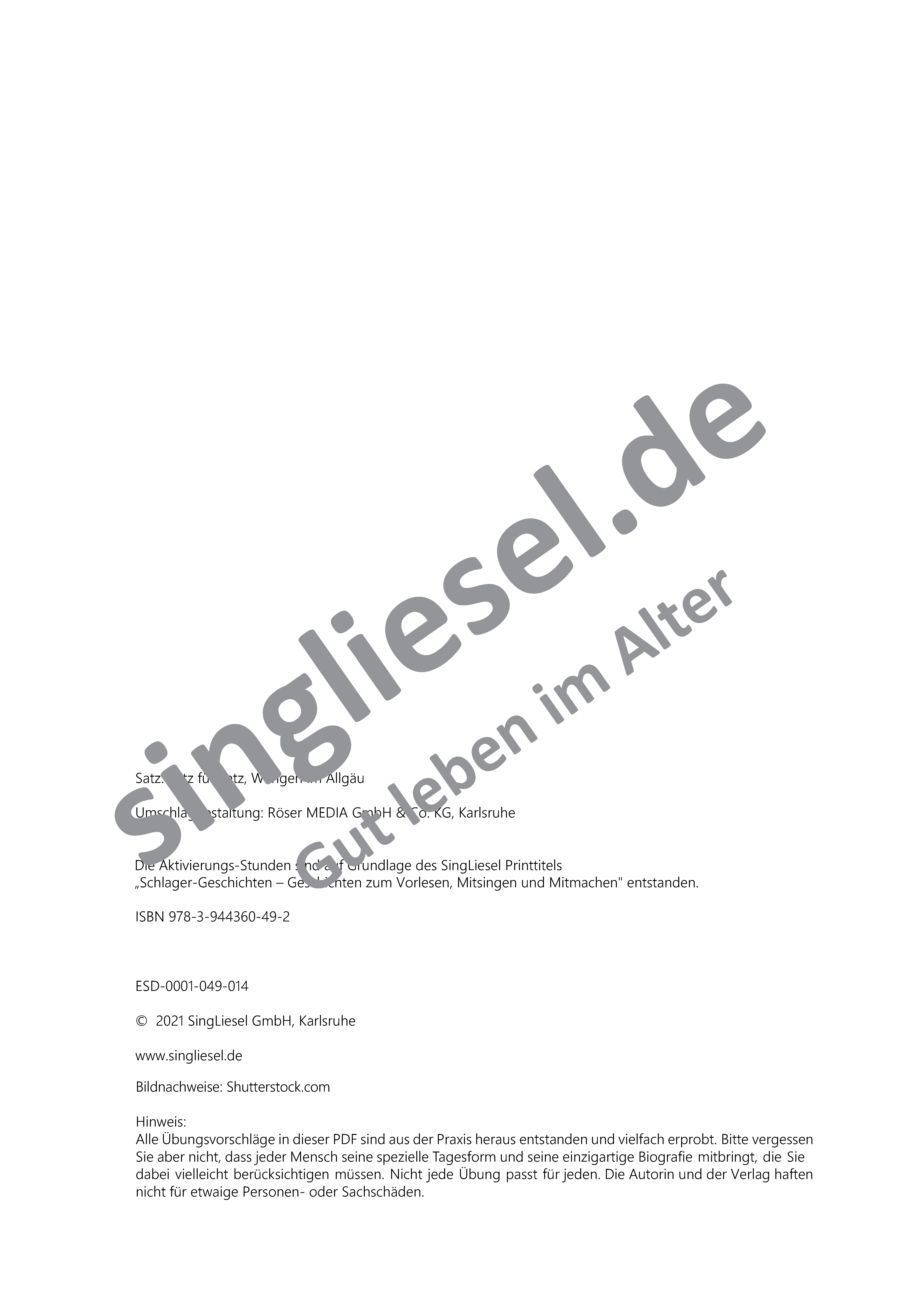In dieser Aktivierungs-Stunde finden Sie einen der schönsten Schlager vergangener Jahrzehnte, eingebunden in eine Geschichte, die Erinnerungen wach werden lässt.