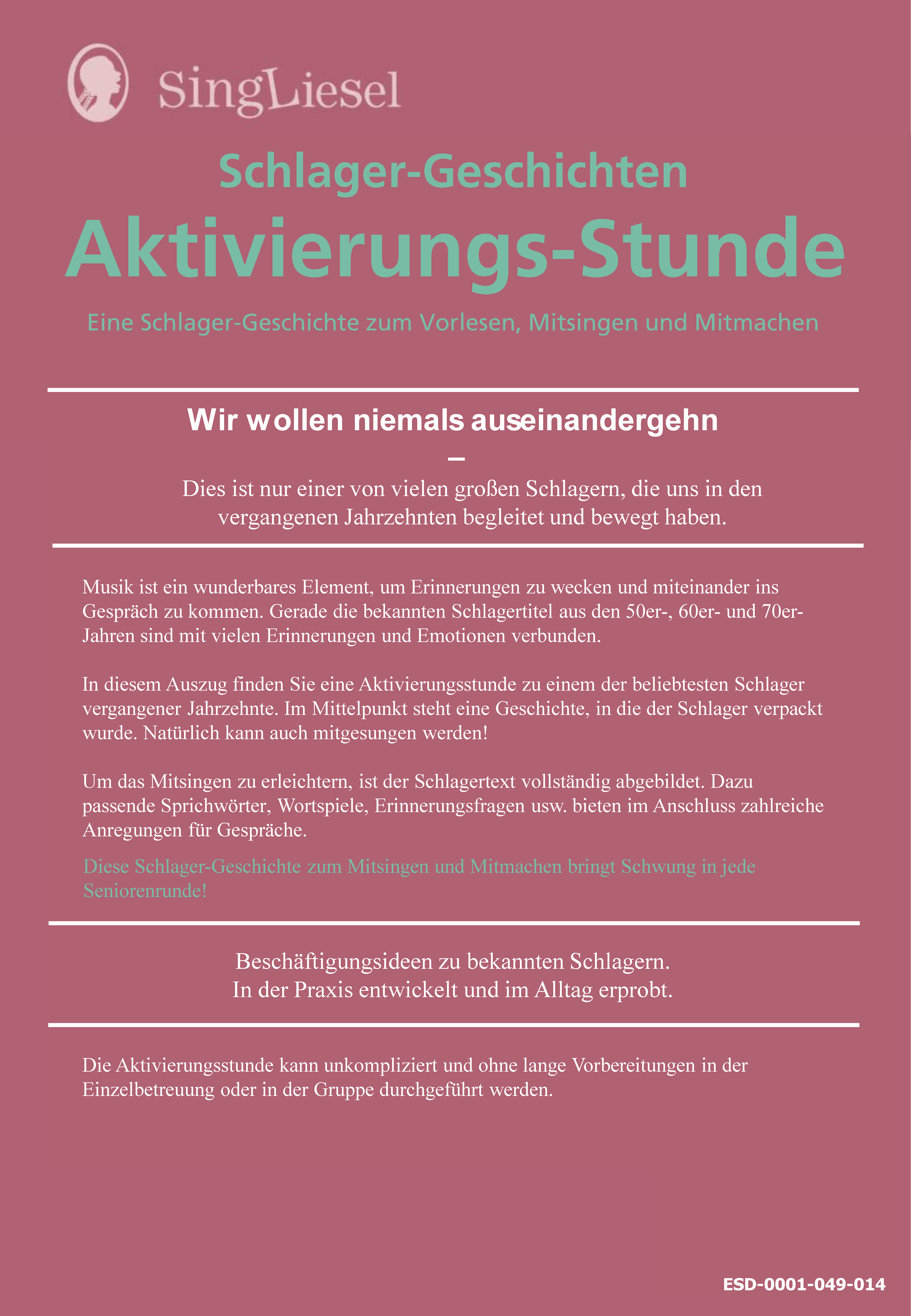 Niemals auseinandergehn - Schlagergeschichten Aktivierungs-Stunde