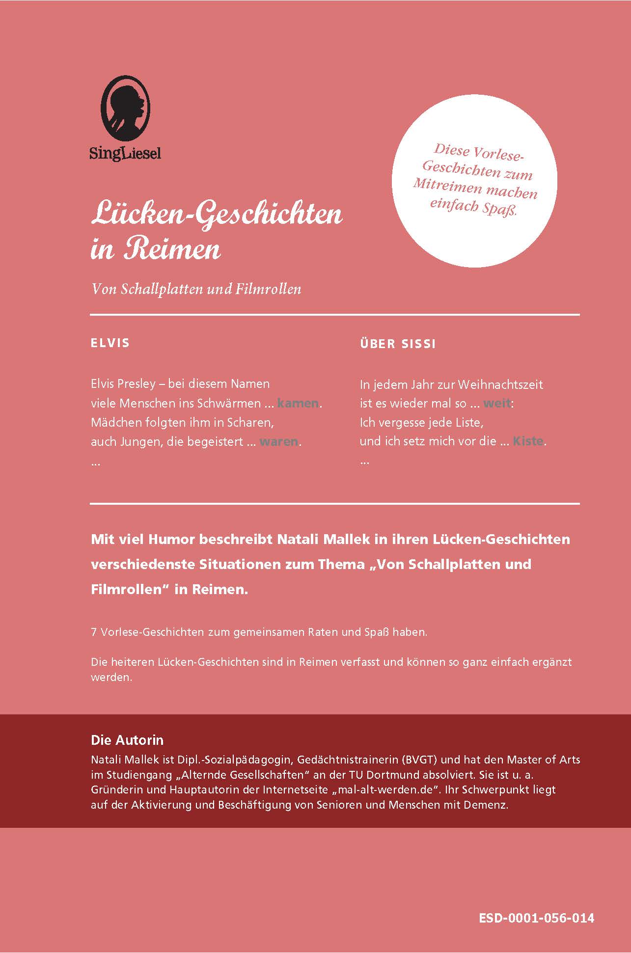 Mit viel Humor beschreibt Natali Mallek in ihren Lücken-Geschichten verschiedenste Situationen zum Thema „Von Schallplatten und Filmrollen“ in Reimen.