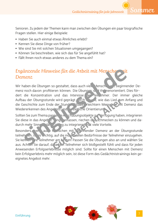 Sommer, Sonne, Eis und Urlaubszeit … Der Sommer bietet viele Anregungen für ein gelungenes Gedächtnistraining. Die Themenstunden lassen sich ohne viel Vorbereitungszeit und Material umsetzen.