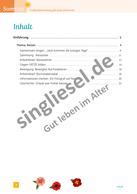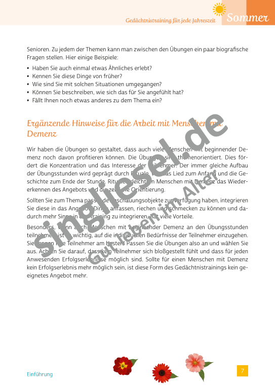 Sommer, Sonne, Eis und Urlaubszeit … Der Sommer bietet viele Anregungen für ein gelungenes Gedächtnistraining. Die Themenstunden lassen sich ohne viel Vorbereitungszeit und Material umsetzen.